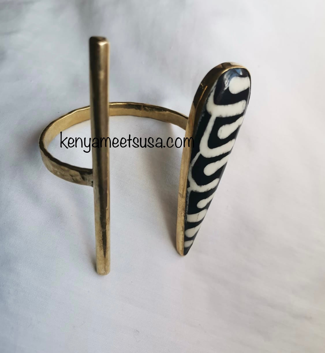 The brass is locally sourced, reflecting our commitment to sustainable practices and supporting the local economy. Some cuffs are accented with bone, adding a touch of natural elegance. The bone used is ethically sourced and carefully incorporated into the design, showcasing intricate patterns and sometimes hand-painted details for added uniqueness.