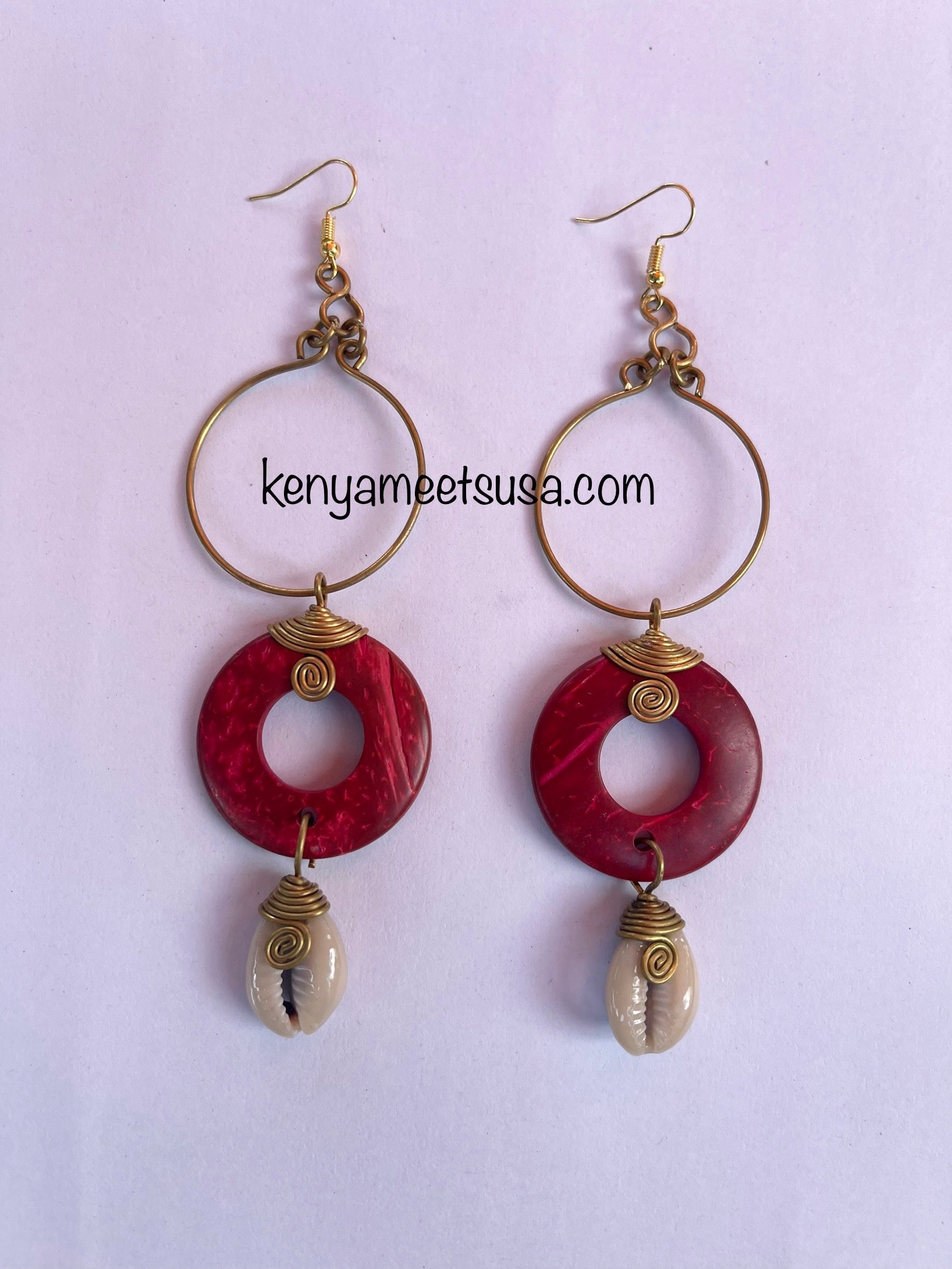 These eye catching earrings feature a blend of natural and metallic elements, designed to make a bold statement. The combination of brass, coconut shell and cowrie shells create a distinctive piece.